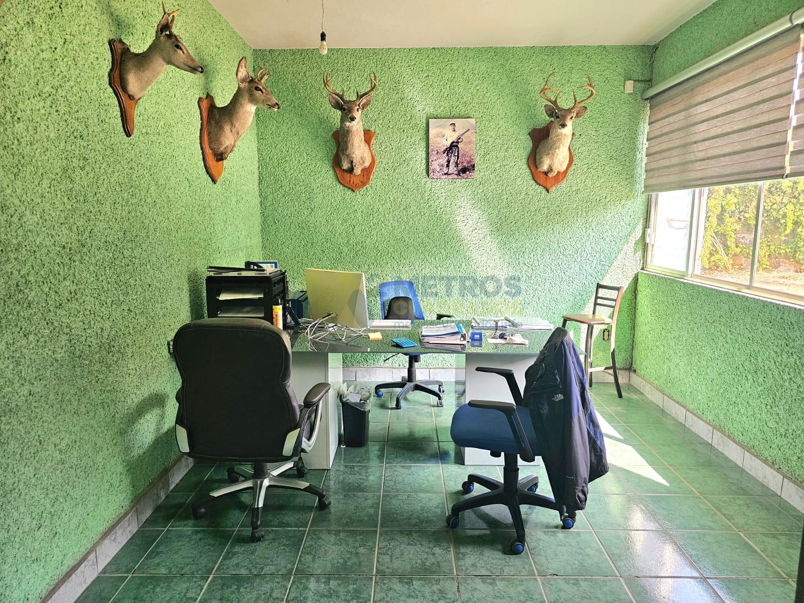 Oficina, Recepción, Sala de Espera, 3 Baños en Oficinas, 1 Baño en Caseta de Vigilancia y 2 Baños en Bodega Techada, 4 Lugares de Estacionamiento, Caseta de Vigilancia.