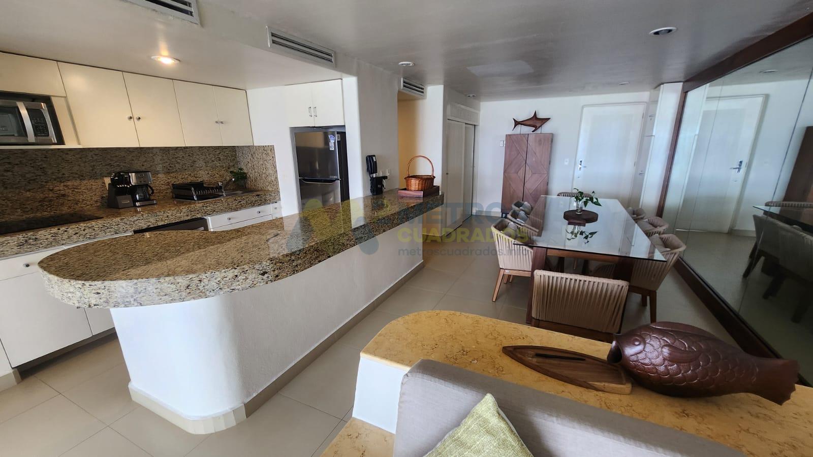 Sala, Bar, Comedor, Comedor en Terraza, Cocina Integral Equipada, Aire Acondicionado en todo el departamento, 2 Espacios de Estacionamiento.