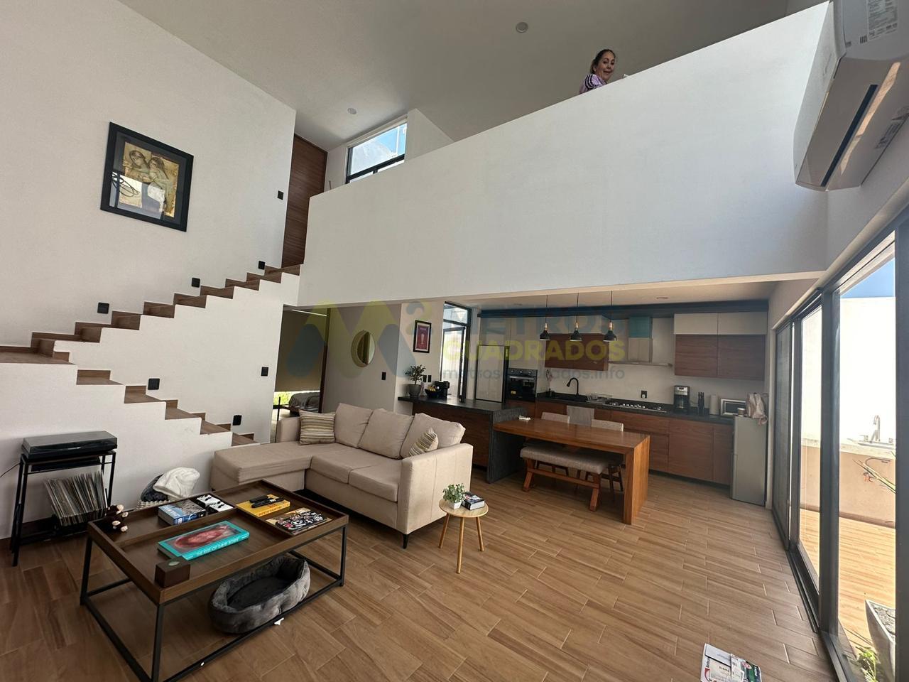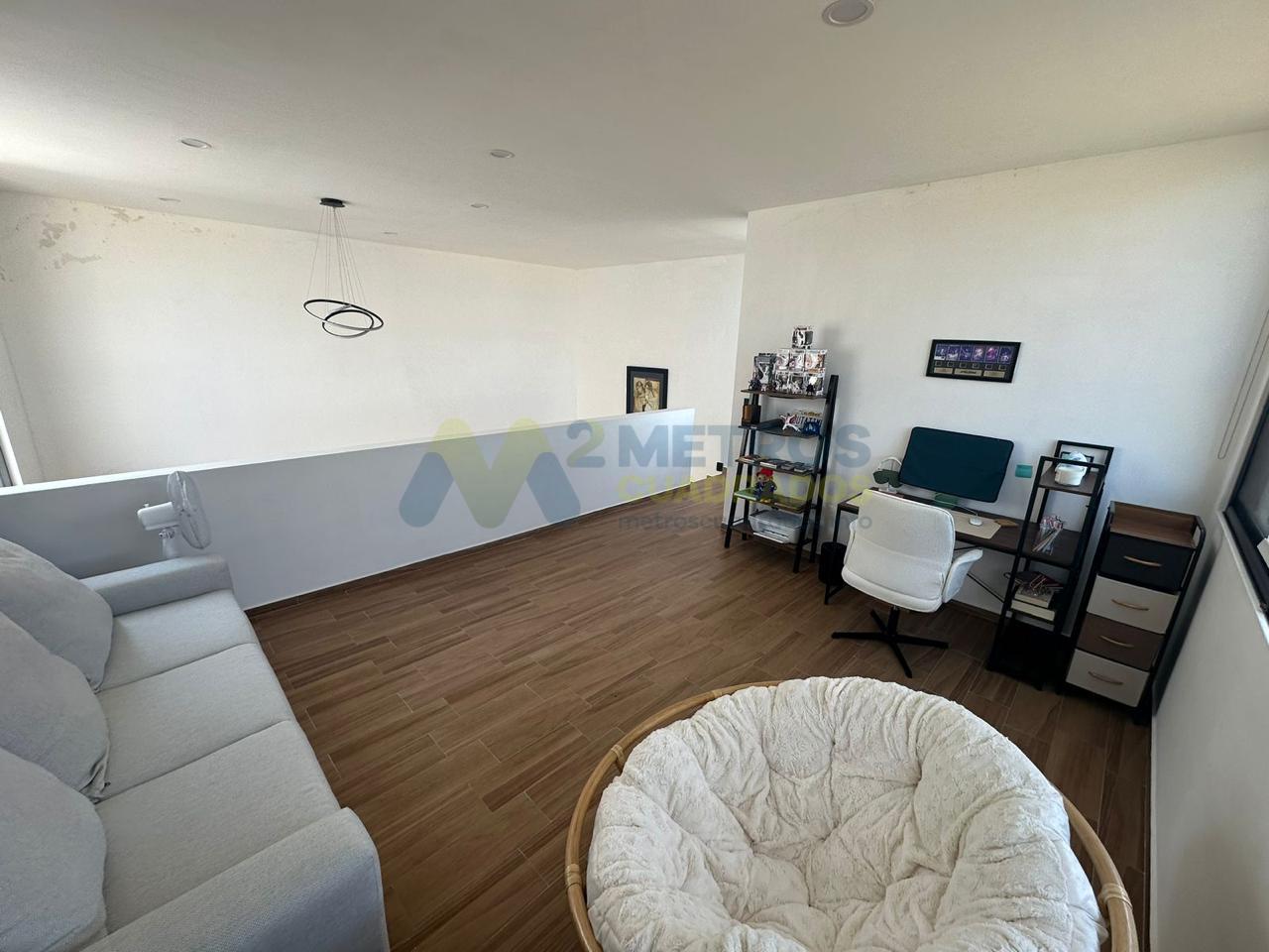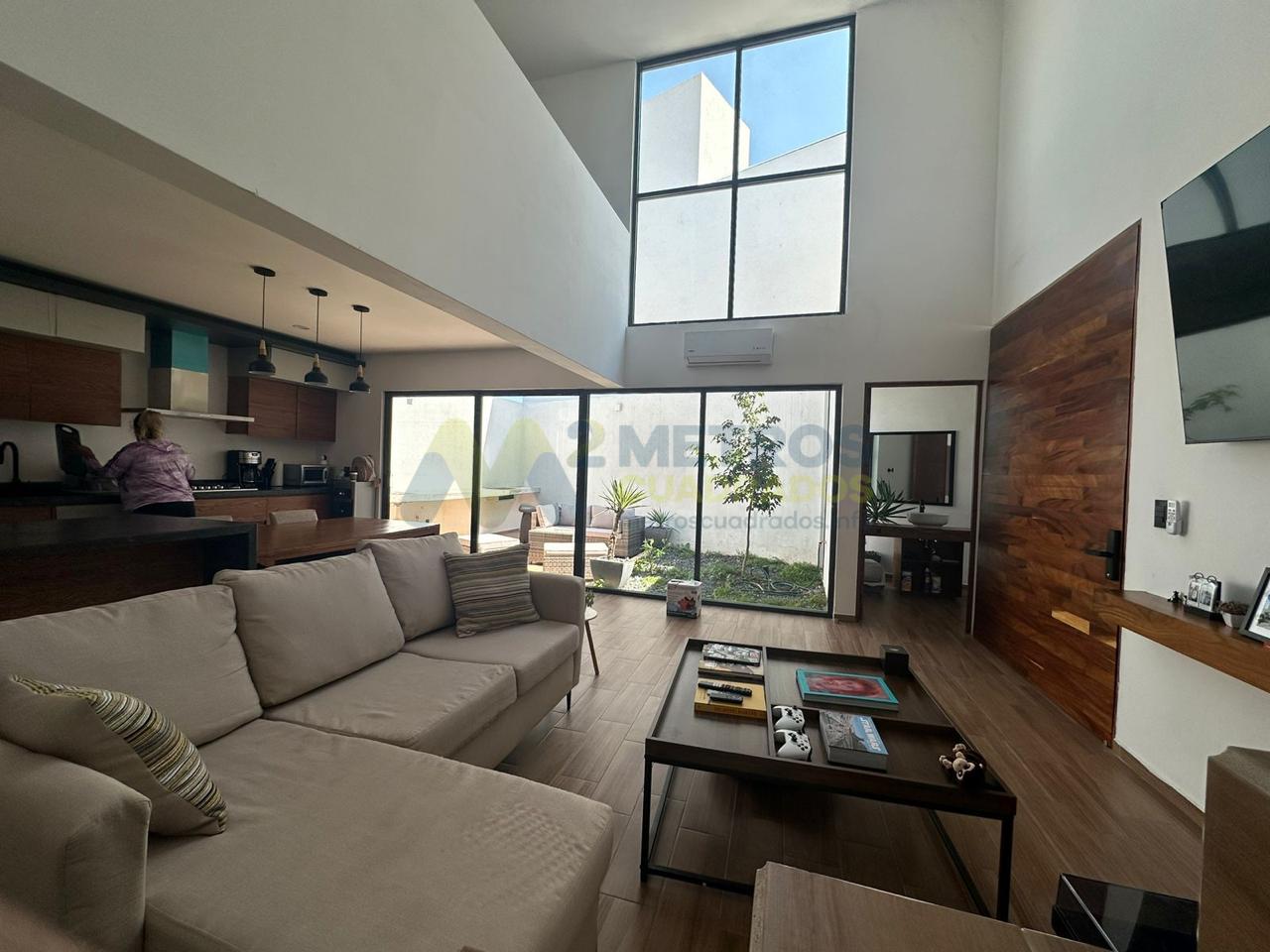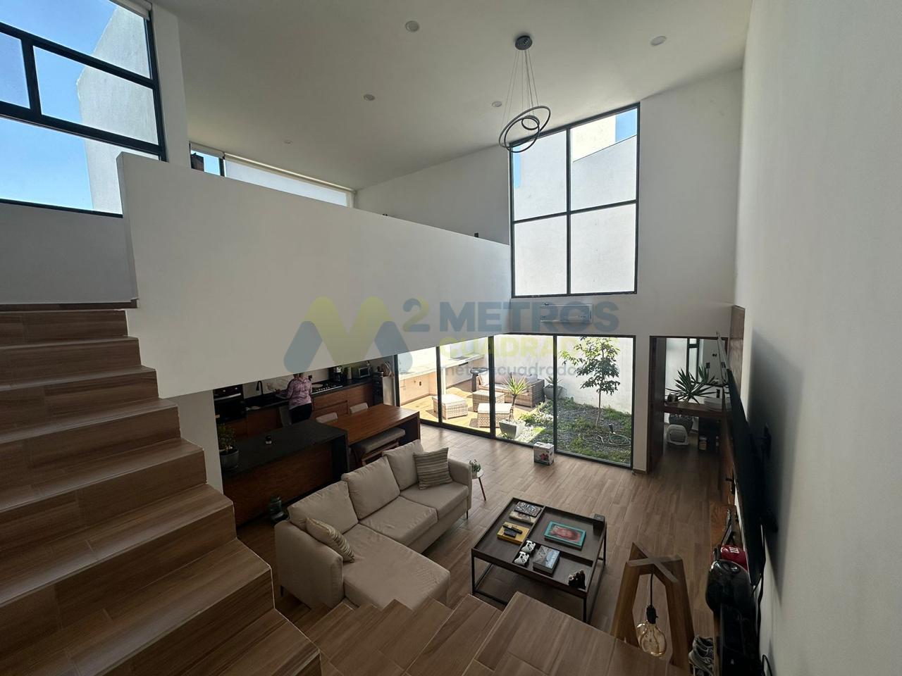 Sala-Comedor a Doble Altura, Cocina Equipada con Refrigerador de Diseño, Habitación con Vestidor y Baño Completo, Medio Baño, Terraza-Jardín con Asadores, Patio de Servicio, Cochera 3 Autos.